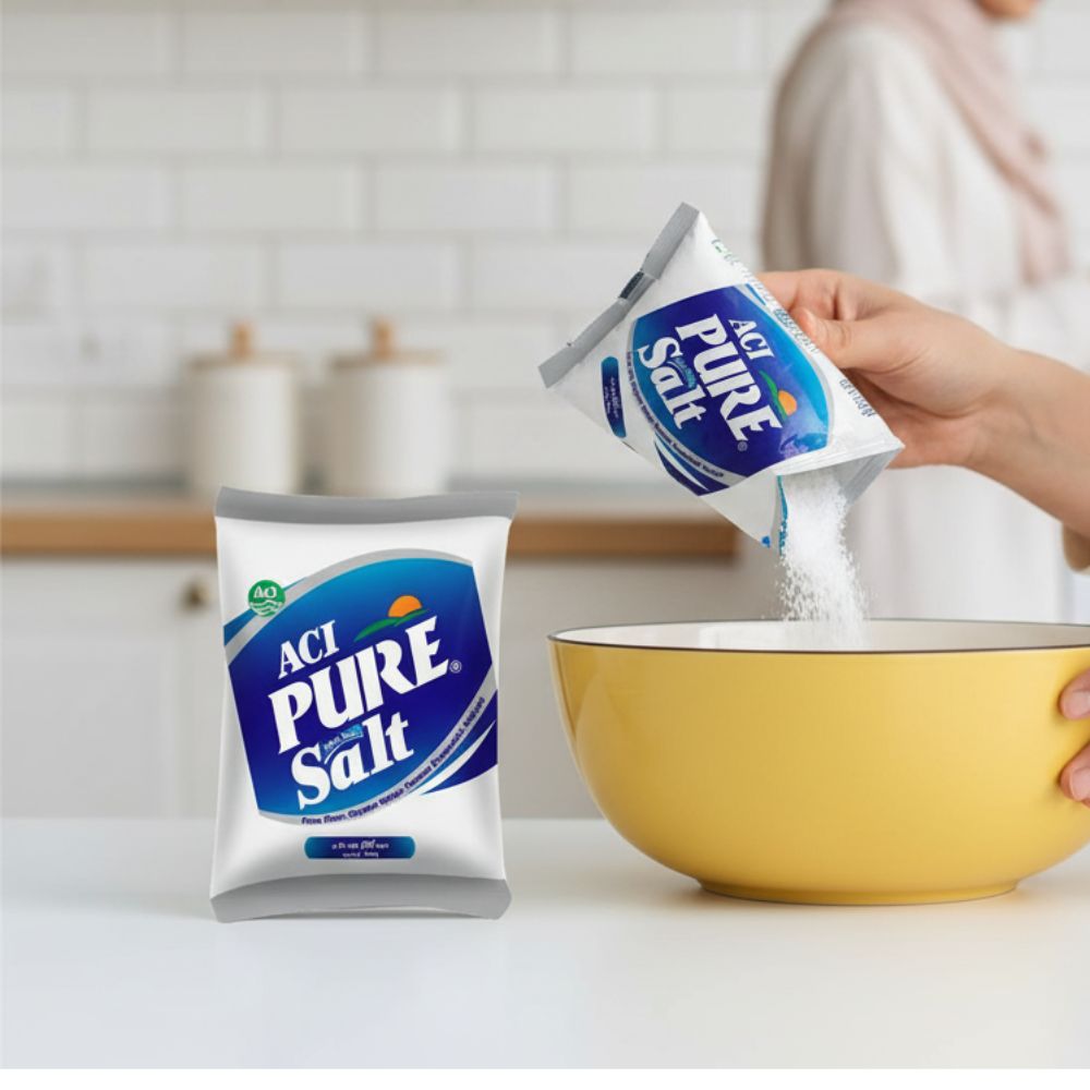 ACI Pure Salt হলো একেবারে বিশুদ্ধ, সহজে প্রবাহমান ও ভ্যাকুয়াম ইভাপোরেটেড লবণ। এতে রয়েছে প্রায় ৯৭% সোডিয়াম, সামান্য পরিমাণে পটাশিয়াম এবং আয়োডিন, যা শরীরের জন্য প্রয়োজনীয় খনিজ সরবরাহ করে। এই লবণটি তাজা, স্বাস্থ্যকর ও সম্পূর্ণ ধূলিমুক্ত, ফলে এটি রান্না ও দৈনন্দিন ব্যবহারের জন্য আদর্শ। উন্নত প্রযুক্তিতে উৎপাদনের কারণে ACI Pure Salt ঝরঝরে থাকে এবং সহজে দানা দানা ছড়িয়ে যায়, যা খাবারে দেয় নিখুঁত স্বাদ ও সতেজতা। প্রতিদিনের খাবারে বিশুদ্ধতা ও গুণগত মান নিশ্চিত করতে ACI Pure Salt একটি বিশ্বস্ত নাম।